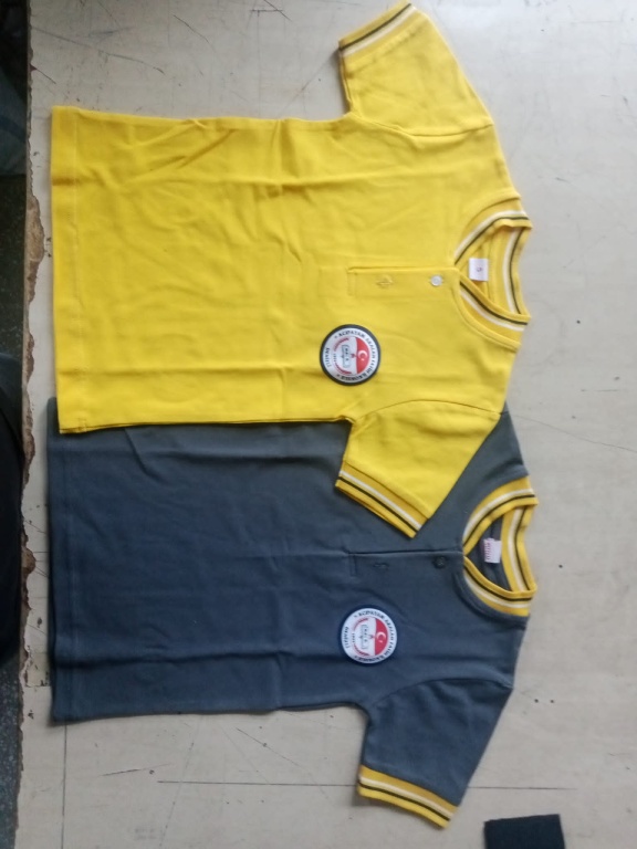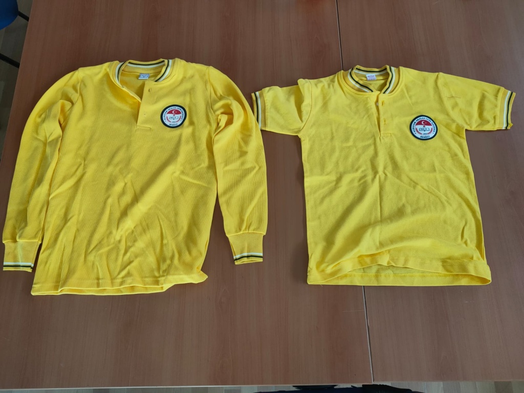 * Kız öğrenciler için doğal ve sağlıklı kumaşlardan (pamuklu), polo yaka, kısa veya uzun kollu sarı renk tişört